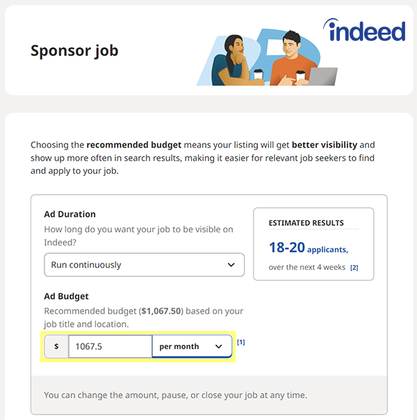 Sponsoring 1 job on Indeed costs over a thousand dollars!